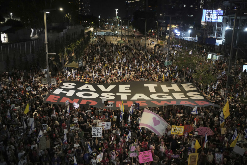 Πλήθος διαδηλωτών κατέκλυσε το βράδυ του Σαββάτου (24/5) τους δρόμους του Τελ Αβίβ, ζητώντας την άμεση διακοπή των εχθροπραξιών στη Λωρίδα της Γάζας, καθώς και την επιστροφή των υπολοίπων ομήρων που εξακολουθούν να κρατούνται από τη Χαμάς.