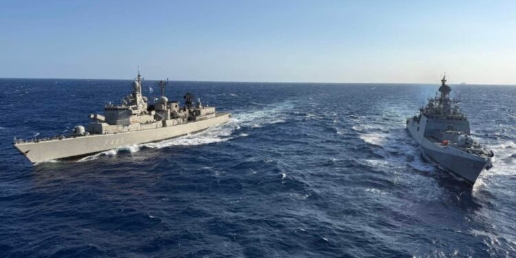 Επιπλέον, πραγματοποιήθηκε επιβίβαση τεσσάρων μελών πληρώματος από το Ινδικό ναυτικό στη φρεγάτα «Θεμιστοκλής», προωθώντας έτσι τη συνεργασία και τη διαλειτουργικότητα μεταξύ των δύο χωρών.