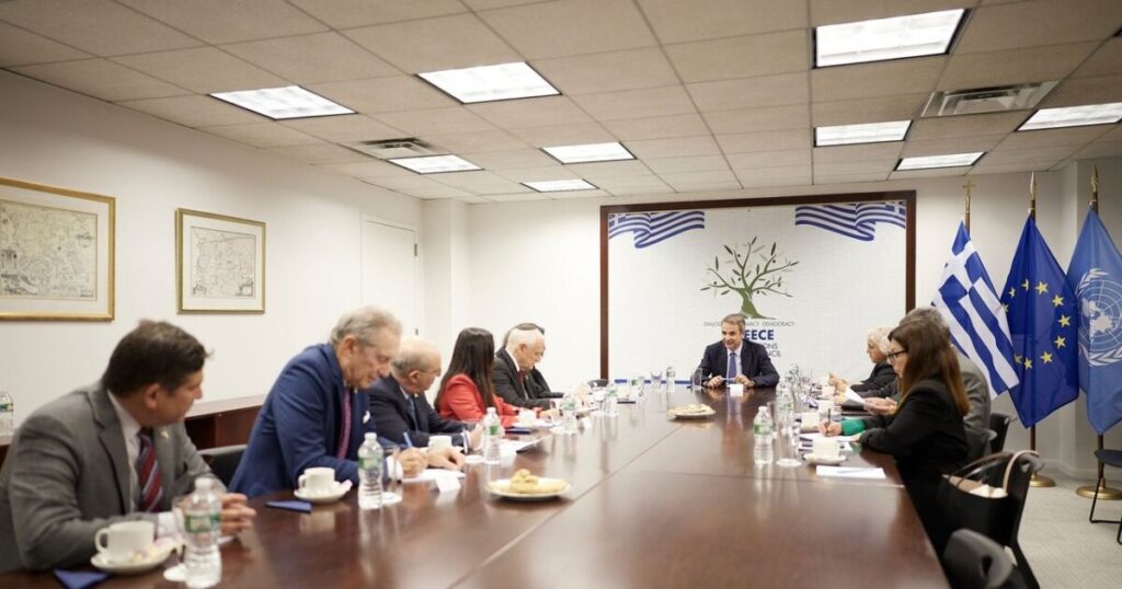 Ο πρωθυπουργός Κυριάκος Μητσοτάκης συναντήθηκε με εκπροσώπους αμερικανοεβραϊκών οργανώσεων στο πλαίσιο της 80ής Γενικής Συνέλευσης του ΟΗΕ στη Νέα Υόρκη. Κατά τη διάρκεια των συναντήσεων, συζητήθηκαν οι εξελίξεις στη Μέση Ανατολή, με έμφαση στην κατάσταση στη Γάζα και την ανάγκη αντιμετώπισης της ανθρωπιστικής κρίσης.