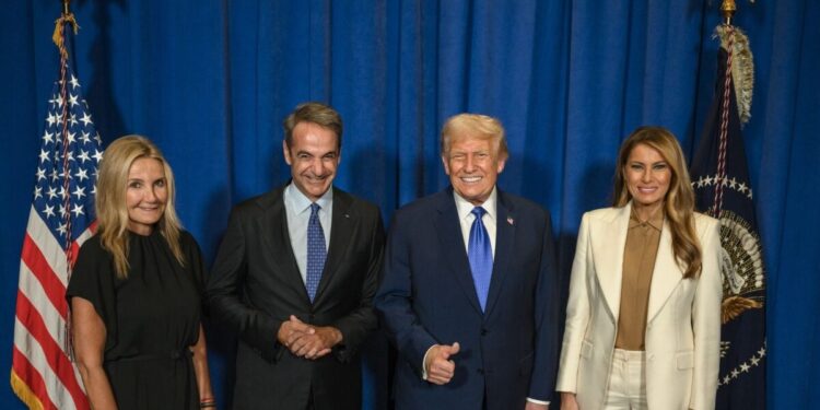 Ο Κυριάκος Μητσοτάκης και η Μαρέβα Γκραμπόφσκι παρευρέθηκαν σε μια επίσημη δεξίωση που παρέθεσε ο Ντόναλντ Τραμπ στη Νέα Υόρκη, μαζί με την Μελάνια Τραμπ. Η παρουσία τους σε αυτό το γεγονός έδωσε έμφαση στις διμερείς σχέσεις μεταξύ των δύο χωρών και ενίσχυσε τη διπλωματική τους προσέγγιση.