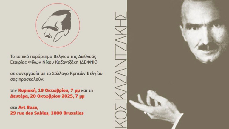 Δύο βραδιές αφιερωμένες στον σπουδαίο Έλληνα στοχαστή και συγγραφέα Νίκο Καζαντζάκη διοργανώνει το Τοπικό Παράρτημα Βελγίου της Διεθνούς Εταιρείας Φίλων Νίκου Καζαντζάκη (ΔΕΦΝΚ), σε συνεργασία με τον Σύλλογο Κρητών Βελγίου.