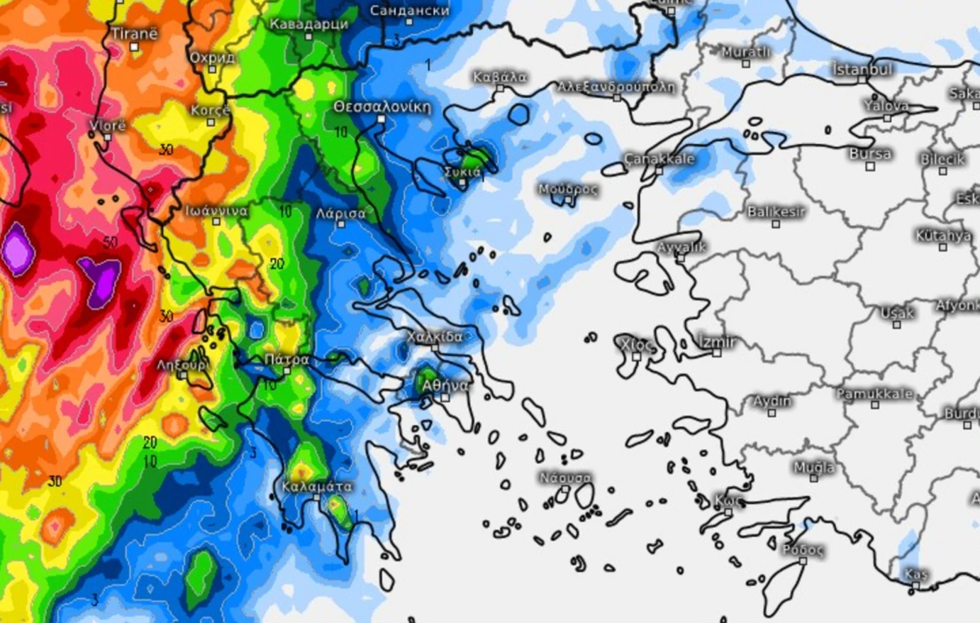 Ιδιαίτερη προσοχή χρειάζεται από τα ξημερώματα της Παρασκευής 17/10 μέχρι το απόγευμα σε Κέρκυρα, Παξούς, Λευκάδα, Κεφαλονιά, Θεσπρωτία και Πρέβεζα. Αναμένονται μέχρι και 80 τόνοι νερού ανά στρέμμα.