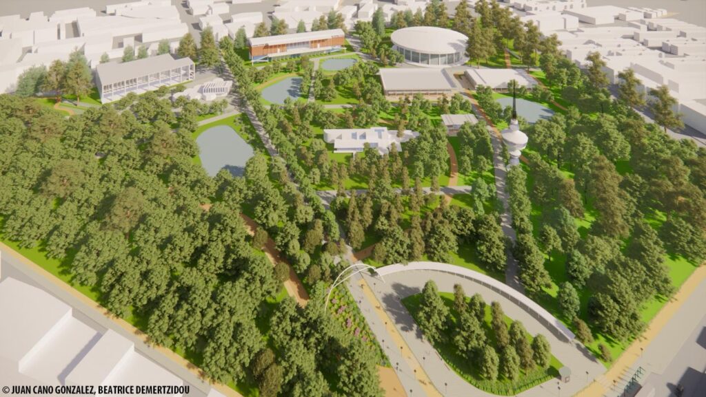 – Δημιουργία Μητροπολιτικού πάρκου με ενιαία και πυκνή φύτευση υψηλών δέντρων, που θα λειτουργεί ως χώρος αναψυχής, άθλησης και πολιτισμού, αλλά και ως φυσική ασπίδα απέναντι στα πλημμυρικά φαινόμενα στο κέντρο της πόλης.