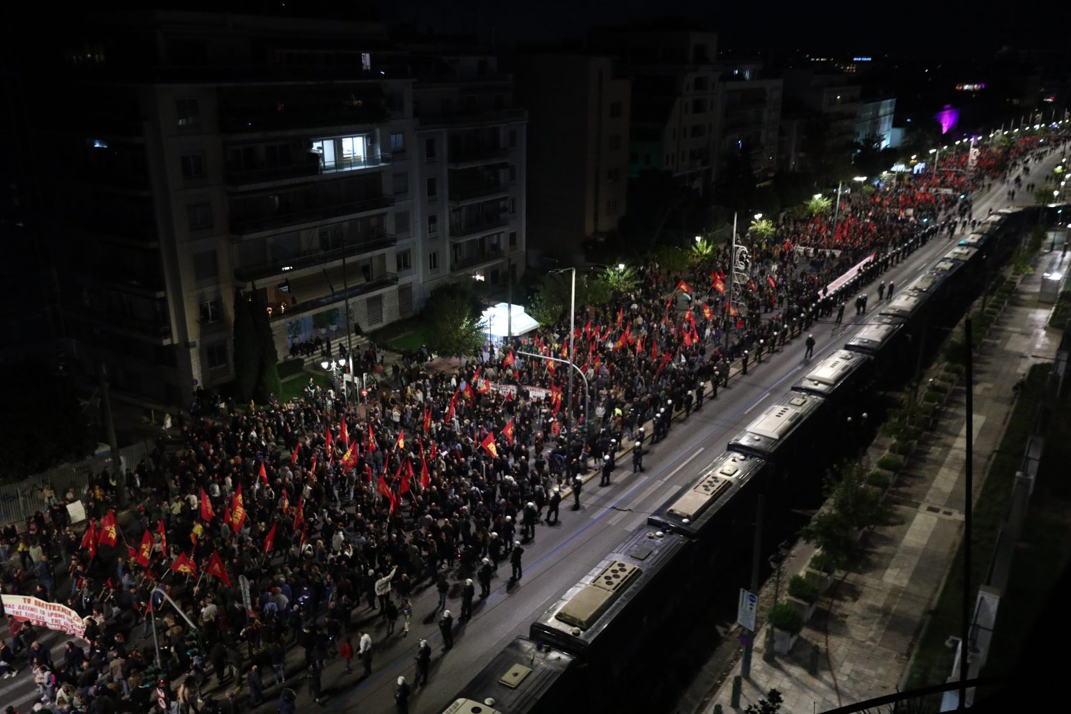 Περισσότεροι από 5.000 αστυνομικοί από διάφορες υπηρεσίες είχαν αναπτυχθεί από το πρωί γύρω από το Πολυτεχνείο, πανεπιστημιακά ιδρύματα, την πρεσβεία των ΗΠΑ, του Ισραήλ, δημόσια κτίρια και σημεία στα Εξάρχεια. Στην επιχείρηση συμμετείχαν επίσης στελέχη της Αντιτρομοκρατικής και της ΕΥΠ, ενώ αστυνομικοί με πολιτικά παρακολουθούσαν κομβικά σημεία πραγματοποιώντας ελέγχους.