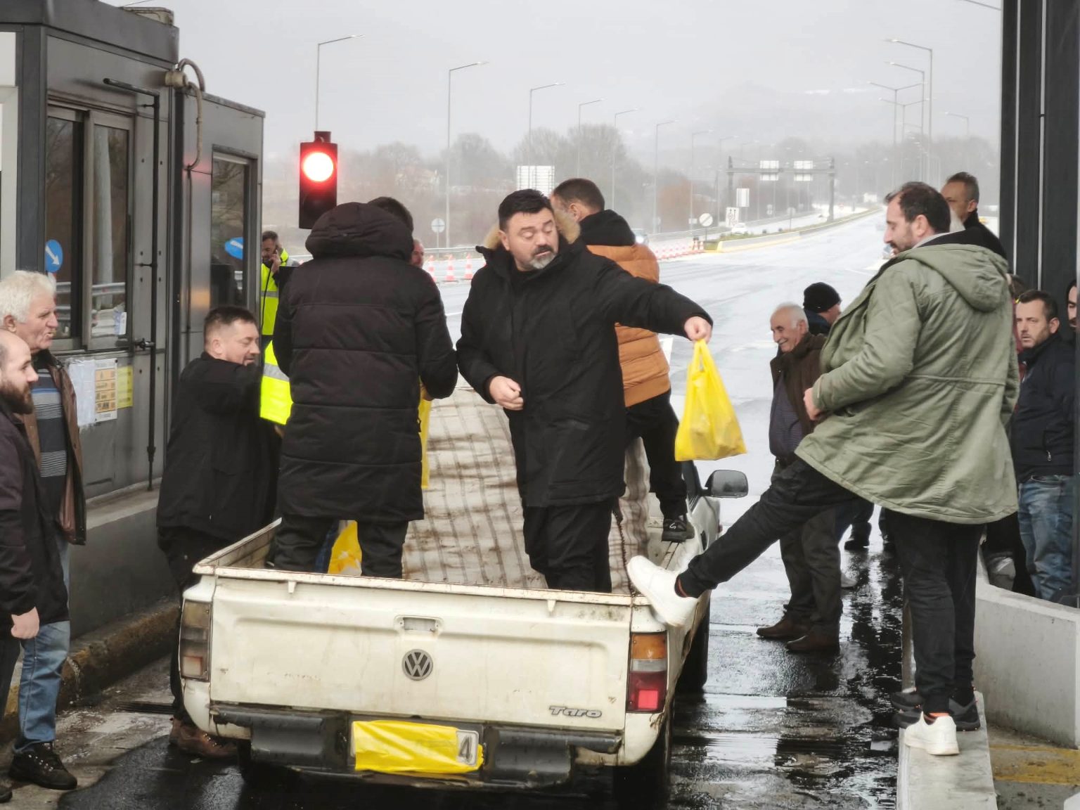 Αγρότες, κτηνοτρόφοι και μελισσοκόμοι άνοιξαν το μεσημέρι της Τρίτης σε άνοιγμα τις μπάρες στα διόδια Δροσοχωρίου Ιωαννίνων. Από τις 13:00 έως τις 15:00 διένειμαν πατάτες, γάλα και αυγά στους διερχόμενους οδηγούς, ενώ παράλληλα επέτρεψαν τη δωρεάν διέλευση όλων των οχημάτων.