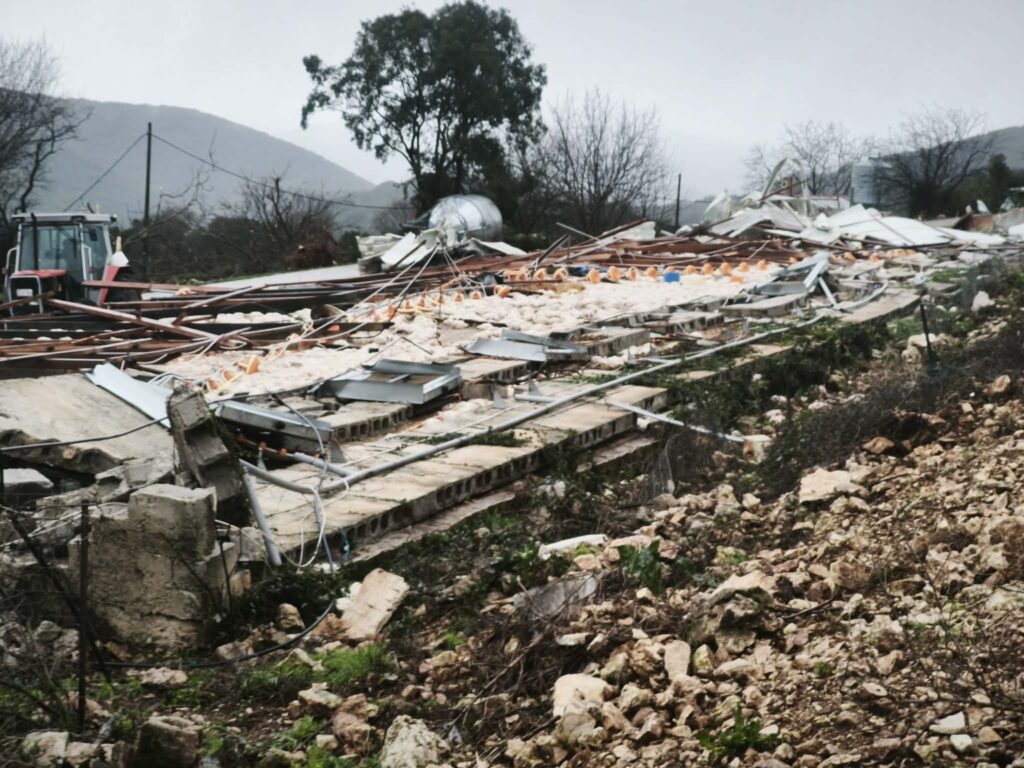 Στην περιοχή του Καλπακίου, ανεμοστρόβιλος προκάλεσε εκτεταμένες ζημιές στις στέγες τριών πτηνοτροφικών μονάδων, με τη μία από αυτές να καταστρέφεται ολοκληρωτικά.