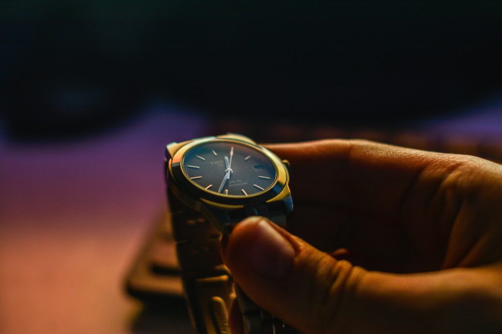Η κάμερα εστιάζει συχνά στις μικρές, σχεδόν ανεπαίσθητες κινήσεις του: στο πώς κοιτάζει το φως να αλλάζει πάνω στα κτίρια, στο πώς σταματά για λίγο πριν διασχίσει έναν δρόμο, στο πώς περιμένει. Ο χρόνος κυλά αργά, σχεδόν βασανιστικά, υπογραμμίζοντας την εσωτερική του πάλη. Σε αρκετές σκηνές, το βλέμμα του πέφτει στον καρπό του, όχι από ανυπομονησία, αλλά σαν υπενθύμιση ότι κάθε στιγμή έχει βάρος και συνέπειες. Εκεί διακρίνεται διακριτικά ένα ρολόι Tissot, χωρίς επιδεικτικότητα, σαν φυσική προέκταση του χαρακτήρα του.