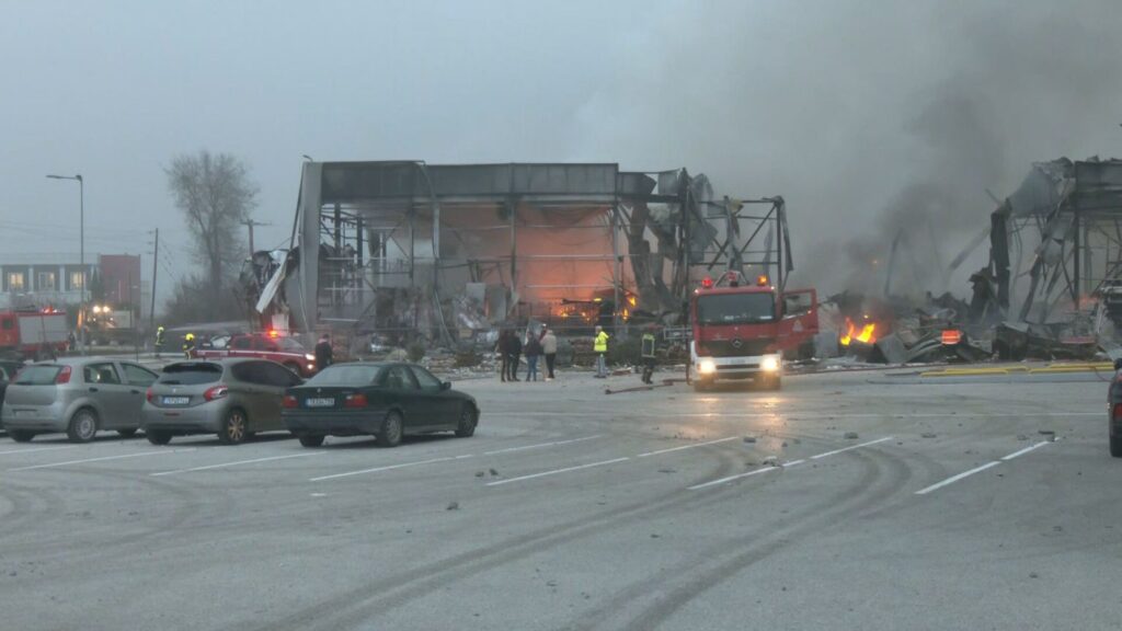 Αυτό που απομένει αυτή τη στιγμή είναι δύο τμήματα του εργοστασίου που καίγονται από τις 4 τα ξημερώματα, με ένα μεγάλο κενό ανάμεσά τους, καθώς το ωστικό κύμα της έκρηξης έκοψε κυριολεκτικά το τεράστιο κτήριο στα δύο, όπως καταγράφεται από την κάμερα του ΕΡΤnews. Τμήμα τοίχου εκσφενδονίστηκε στην απέναντι πλευρά, ενώ στη συνέχεια κατέρρευσε η οροφή.