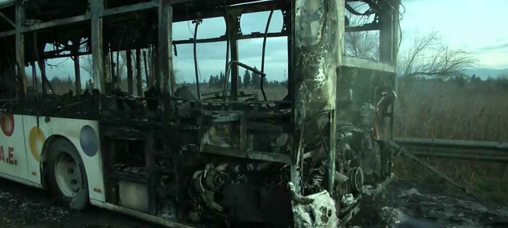 Θεσσαλονίκη: Αστικό λεωφορείο έπιασε φωτιά εν κινήσει στη Σίνδο – Σώοι οι επιβάτες