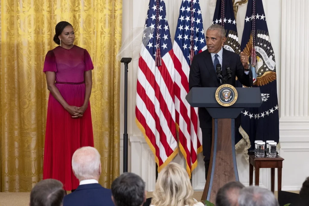 Το ζεύγος Ομπάμα παρουσιάζεται ως πίθηκοι στο συνωμοσιολογικό αυτό βίντεο, το οποίο είναι αφιερωμένο στις προεδρικές εκλογές του 2020 και αναρτήθηκε το βράδυ της Πέμπτης από τον πρόεδρο Τραμπ στο Truth Social. Μέχρι το πρωί της Παρασκευής, το βίντεο είχε συγκεντρώσει πολλές χιλιάδες «likes» στην πλατφόρμα.