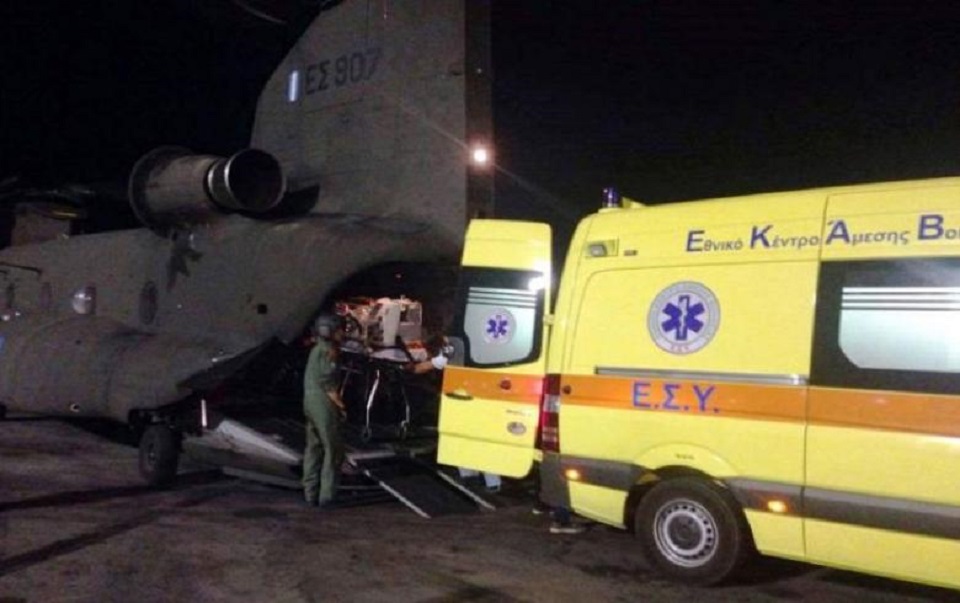 Η μεταφορά της πραγματοποιήθηκε με ελικόπτερο Super Puma της Πολεμικής Αεροπορίας, το οποίο κατευθυνόταν προς την Κρήτη.