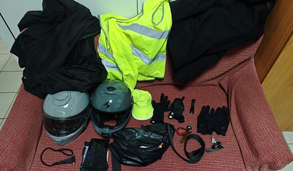 Οι άνδρες της ΟΠΚΕ αντιλήφθηκαν ότι η εικόνα αυτή ήταν ύποπτη και τους έκαναν σήμα να σταματήσουν για έλεγχο. Οι δύο επιβαίνοντες, ωστόσο, προσπάθησαν να διαφύγουν και αμέσως κινητοποιήθηκαν οι αστυνομικές δυνάμεις. Αρχικά συνελήφθη ο συνεπιβάτης της μηχανής και λίγο αργότερα ακινητοποιήθηκε και ο οδηγός. Πάνω στον συνεπιβάτη βρέθηκε αυτοσχέδιο εργαλείο θραύσης τζαμιών, παρόμοιο με αυτά που χρησιμοποιούν εγκληματικές ομάδες για να σπάνε τα παράθυρα οχημάτων.