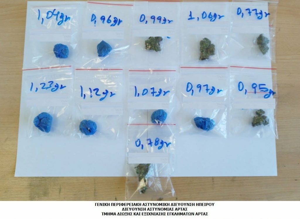 Ανάμεσα στους συλληφθέντες βρίσκεται και ένας ανήλικος στην Άρτα, ο οποίος κατηγορείται για διακίνηση, καθώς στην κατοχή του εντοπίστηκαν έντεκα συσκευασίες με ακατέργαστη κάνναβη συνολικού βάρους 10,94 γραμμαρίων, ενώ συνελήφθη και η μητέρα του για παραμέληση εποπτείας ανηλίκου.