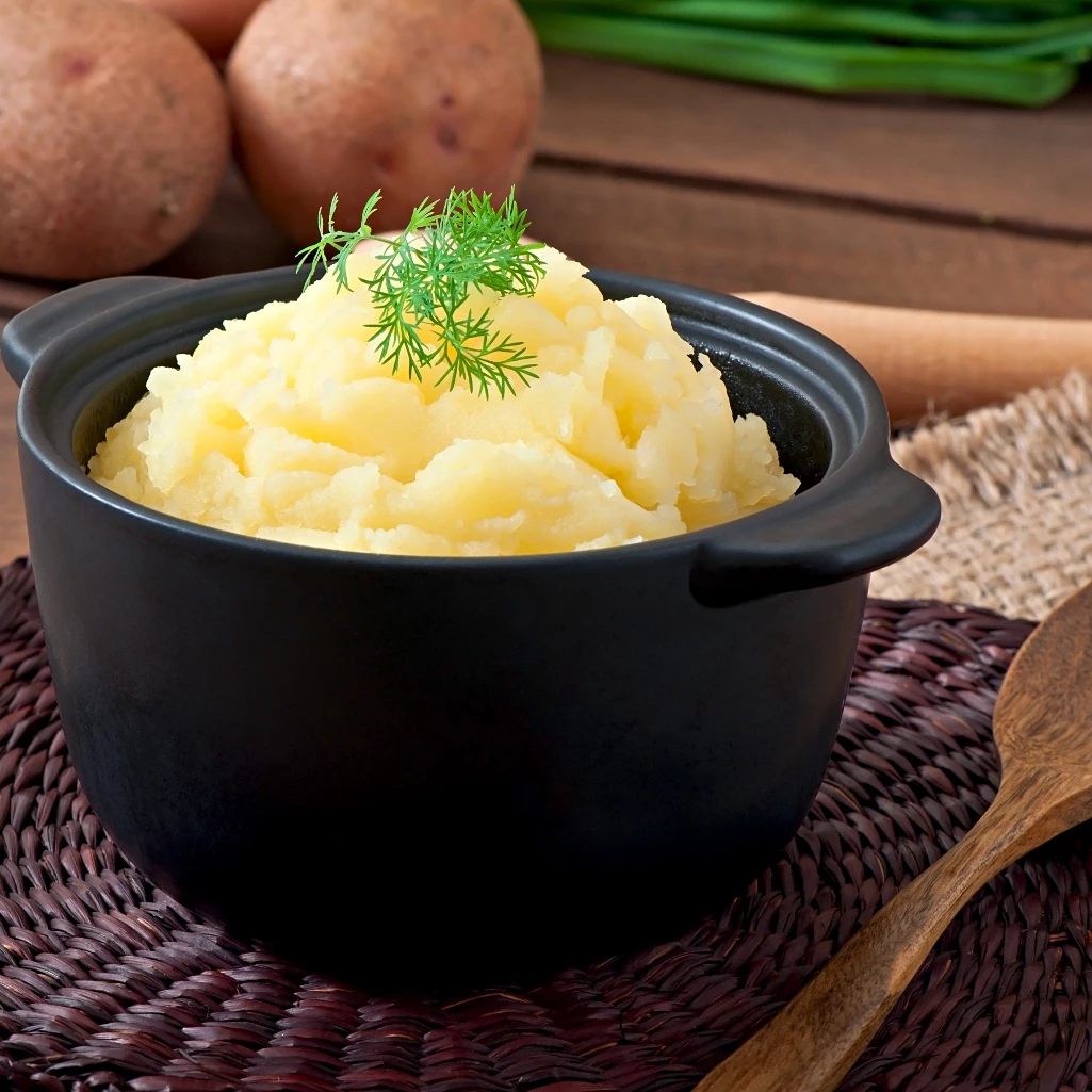Πατάτες Yukon Gold: Διαθέτουν φυσικά κρεμώδη υφή, γεγονός που επιτρέπει την επίτευξη βελούδινου αποτελέσματος με μικρότερη ποσότητα βουτύρου ή γάλακτος. Παράλληλα, είναι πλούσιες σε κάλιο και βιταμίνη C.