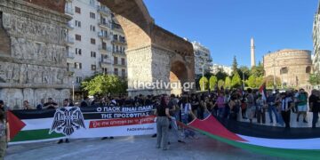 Διαμαρτυρία φίλων του ΠΑΟΚ ενάντια στη Μακάμπι – Υποστήριξη στην Παλαιστίνη